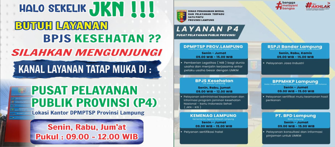 Pusat Pelayanan Publik Provinsi Lampung (P4) resmi diluncurkan pada hari Rabu, 9 Juli 2025, diresmikan oleh Wakil Gubernur Lampung, dr. Jihan Nurlela, M.M.